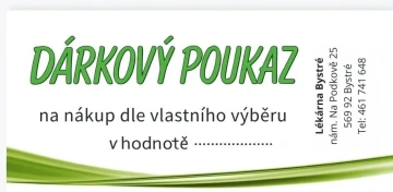 Při nákupu s věrnostní kartou lékárny Bystré získáte slevu na veškerý volně dostupný sortiment - léčivé přípravky, vitamíny, doplňky stravy.